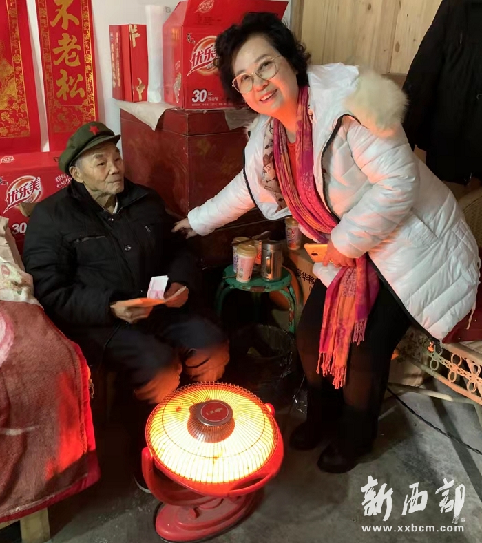 ▲社科院老黨員劉蘭芳為抗戰(zhàn)老兵送上慰問金以表愛心