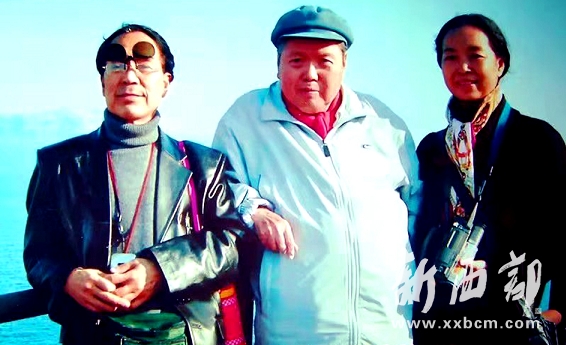 ▲2005年,梁鑫哲(左一)和夫人與劉文西先生在韓國濟(jì)州島采風(fēng)。