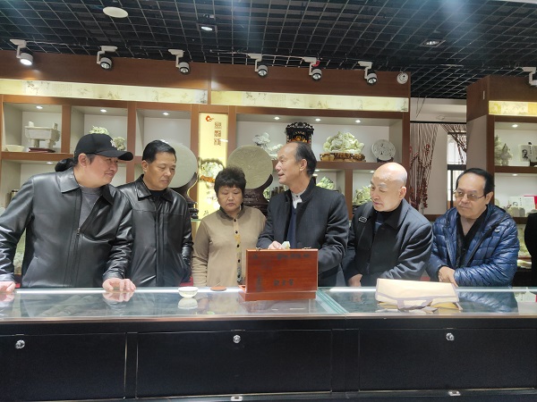 本次活動(dòng)在藍(lán)田縣陳雙軍工作室隆重舉行,由陜西省民間藝術(shù)促進(jìn)會(huì)指導(dǎo),藍(lán)田玉商會(huì)主辦,藍(lán)田玉商會(huì)會(huì)長(zhǎng)楊博主持。丁立虎、魯建在講話中鼓勵(lì)大師們堅(jiān)持正確的政治方向,德藝雙馨,積極立足本土藍(lán)田玉資源,創(chuàng)造高質(zhì)量的玉雕藝術(shù)作品。吳建華發(fā)言說(shuō),陳雙軍推出43件玉雕系列作品,標(biāo)志藍(lán)田玉文化又一次邁上了新的臺(tái)階。書畫家們贈(zèng)送了書畫作品,省社科院書畫藝術(shù)中心致辭并為楊博、陳雙軍頒發(fā)了書畫藝術(shù)家聘書?;顒?dòng)中,陳雙軍詳細(xì)的介紹了自己如何利用藍(lán)田玉的色彩,將玉文化、雕刻藝術(shù)和傳統(tǒng)文化等相融合傳承發(fā)展創(chuàng)作的創(chuàng)新理念。省大師任飛代表大師團(tuán)隊(duì)發(fā)表感言,向陳雙軍所取得優(yōu)異成績(jī)表示祝賀。來(lái)賓們表示將繼續(xù)團(tuán)結(jié)互助,努力提高工藝水平,把藍(lán)田玉事業(yè)做大做強(qiáng)。