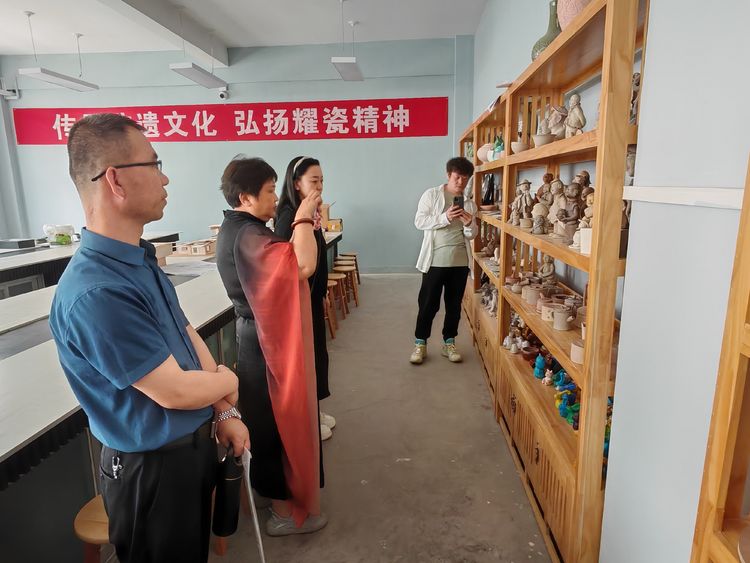 一行三人在范建峰院長和張媛老師陪同下,參觀了學院正在舉辦的師生書畫藝術展和陶瓷藝術學院工作室。